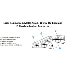 Metal Ayaklar, Metal Çerçeveli ve 20x40x1,50mm Metal Taşıyıcılı Monteli 10 mm Polikarbon Levha