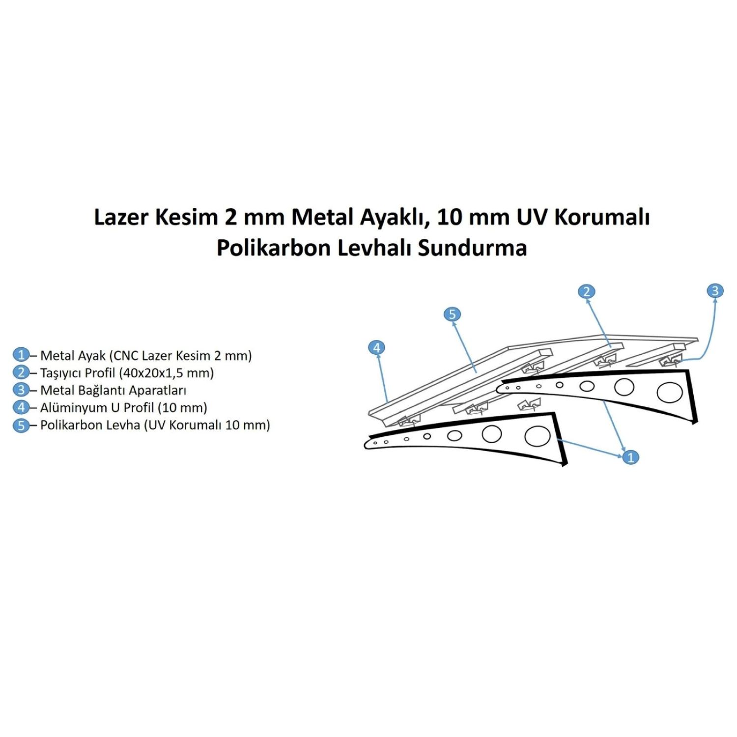 Lazer Kesim Metal Ayak 10 mm Levhalı Pratik Sundurma Derinlik 60 cm