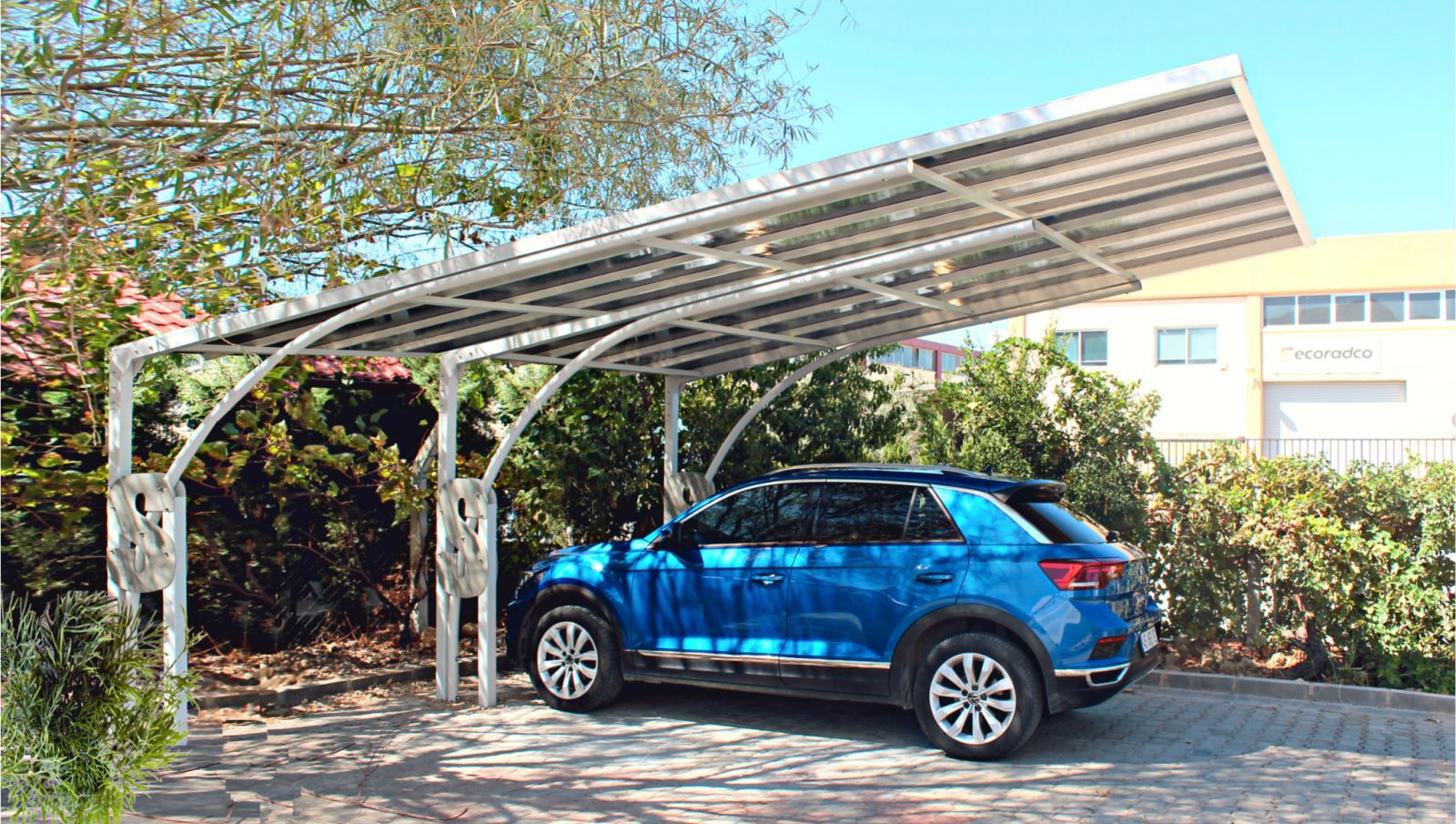 Star Carportların çatı ayakları Anodize Alüminyum ve Demirden üretilir. Çatı Malzemesi 4 odacıklı 10 mm UV Korumalı polikarbondur.Profiller istenilen RAL rengine boyanabilmektedir.